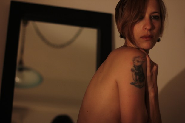 טיפות יבשות על מראת האמבט ושפשוף עיניים